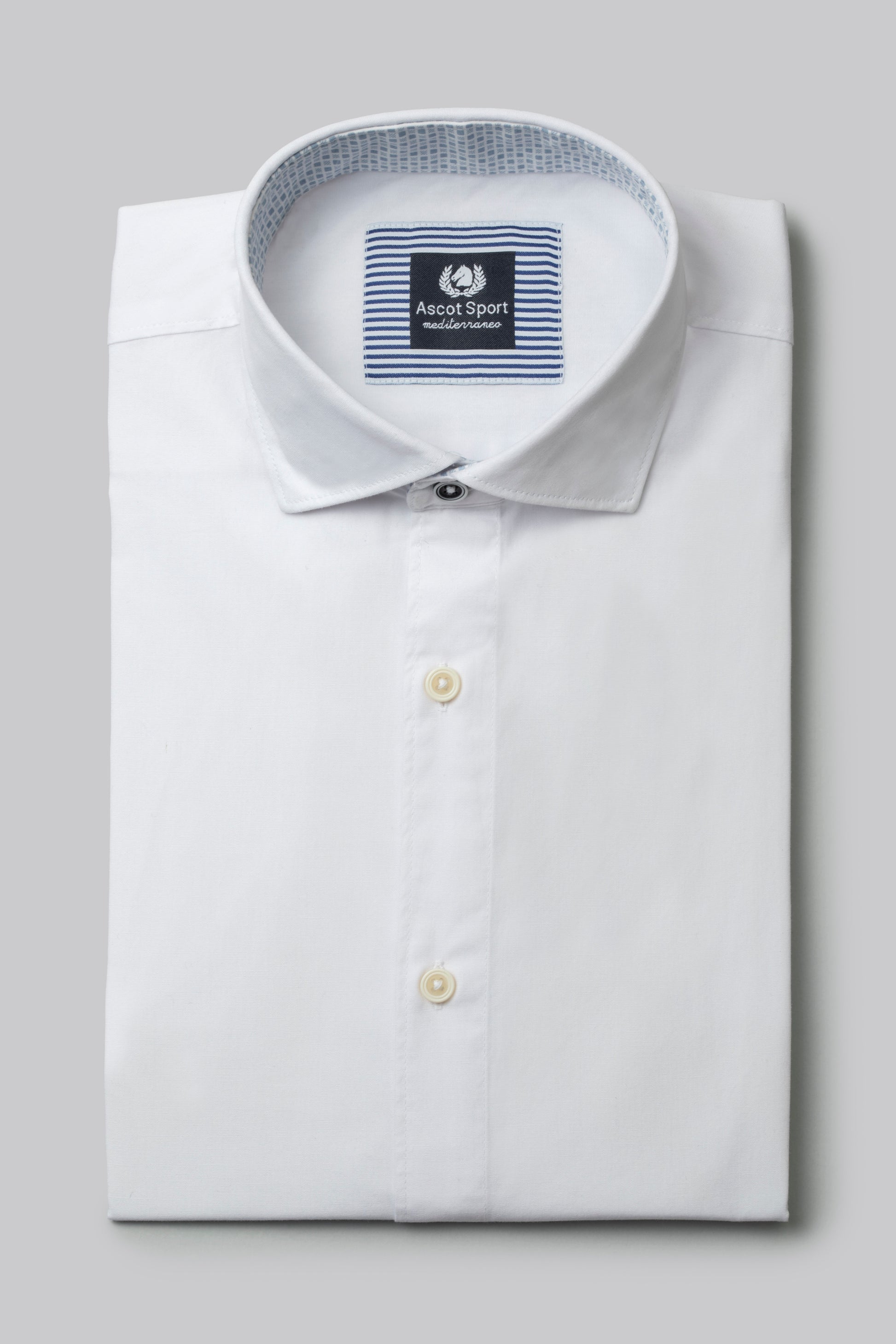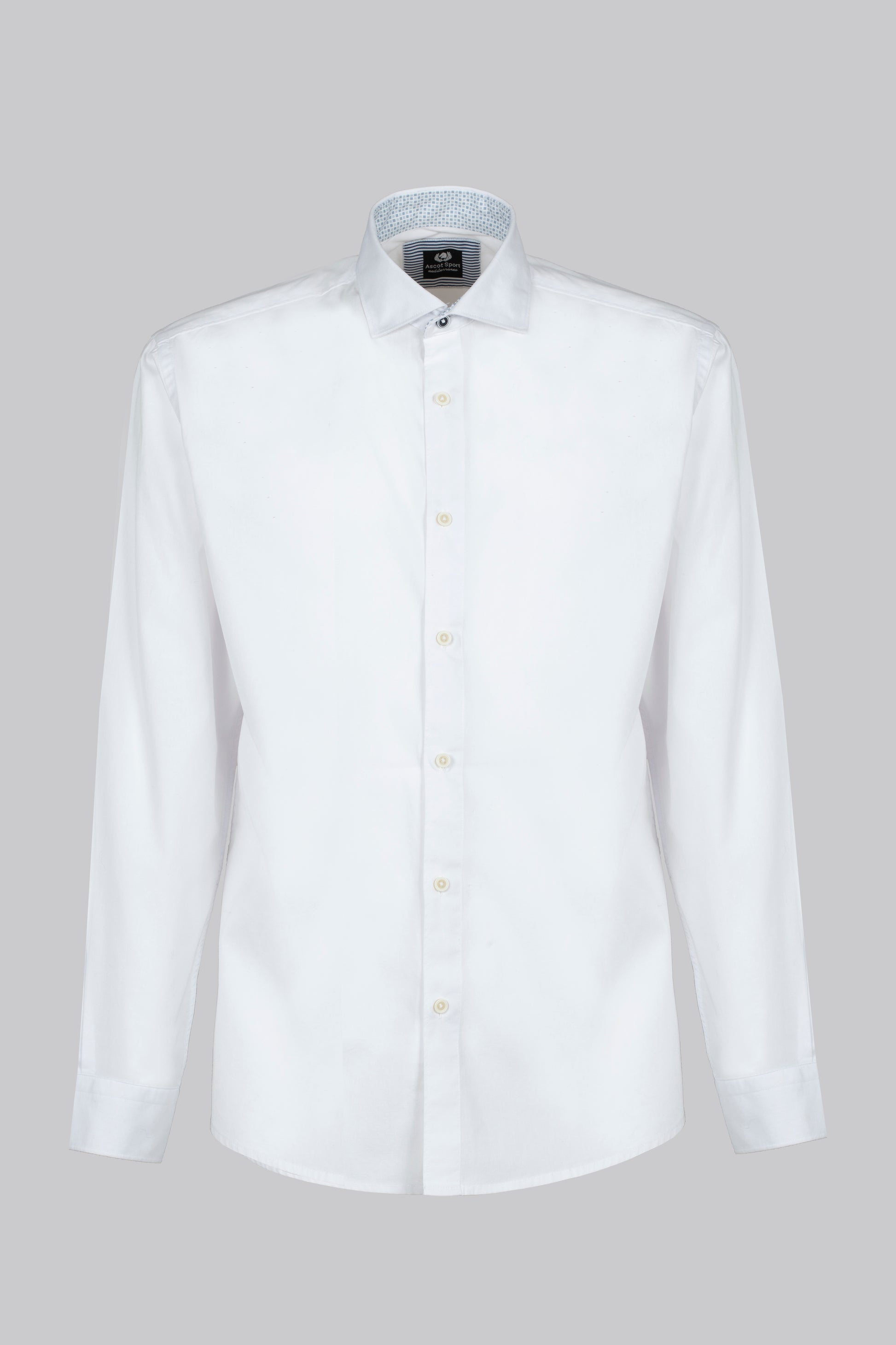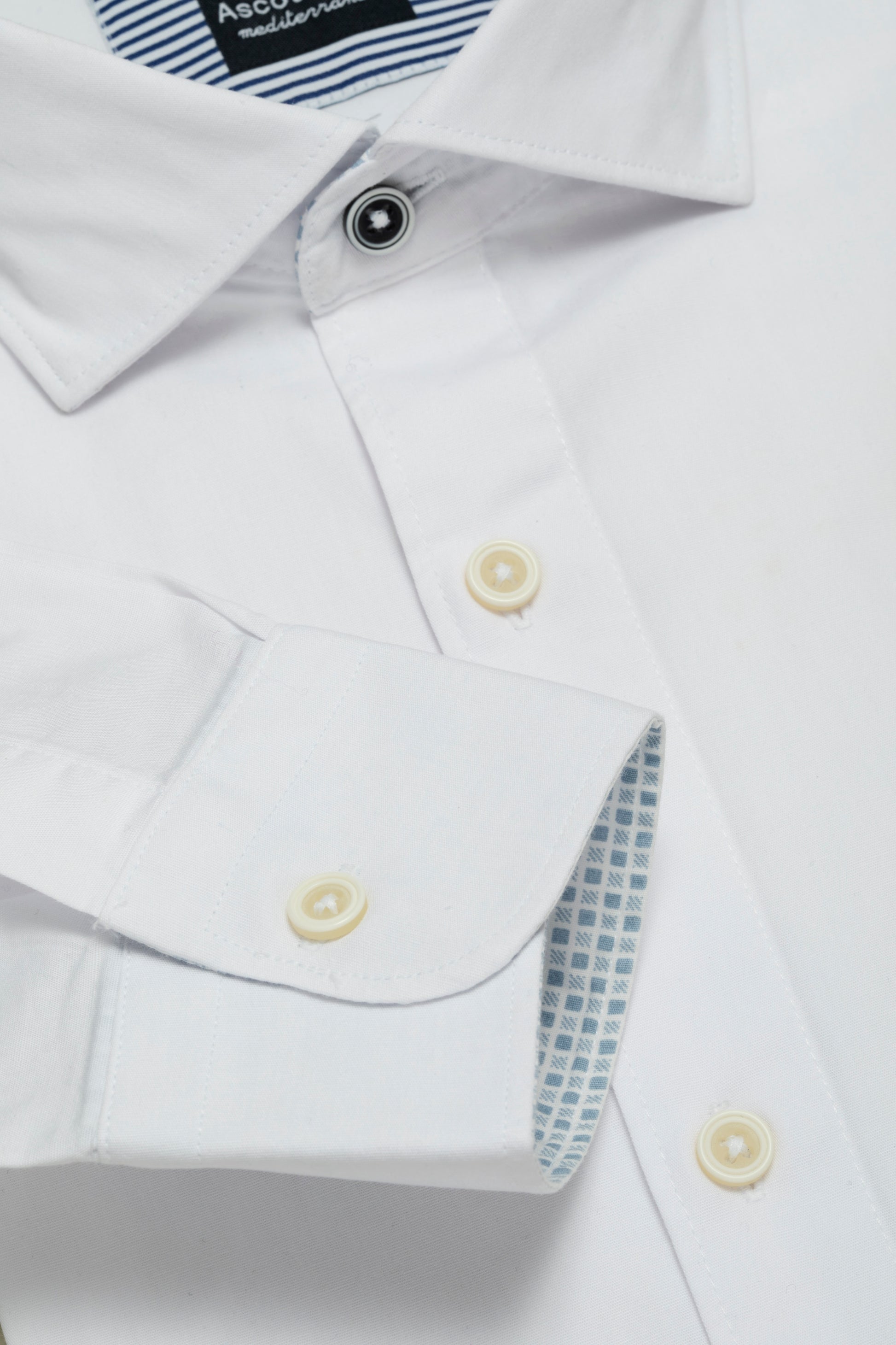 100% cotton shirt with classic collar with contrasting button detail and internal collar print