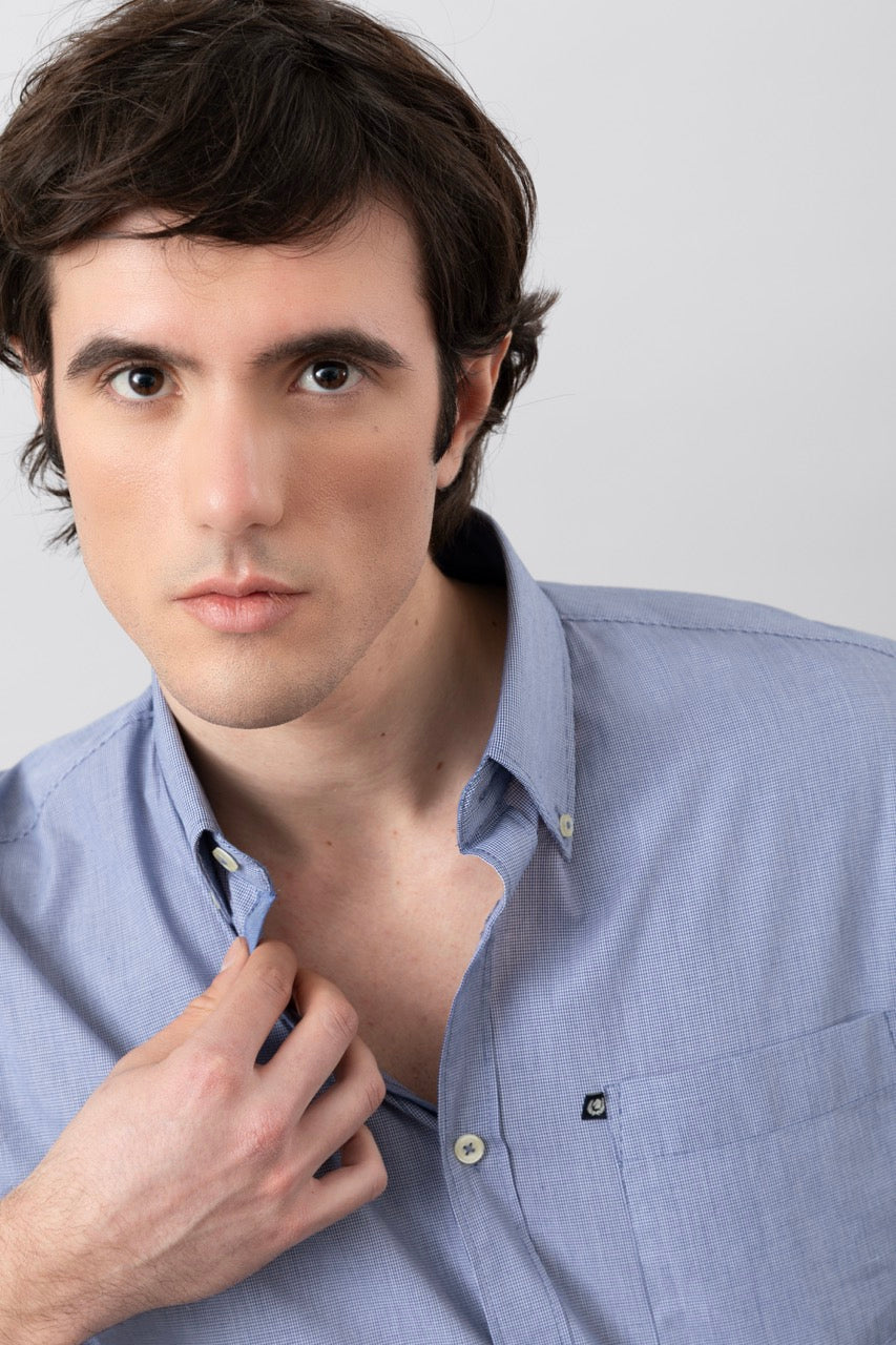 Camicia button down micro quadro in 100% popeline di cotone
