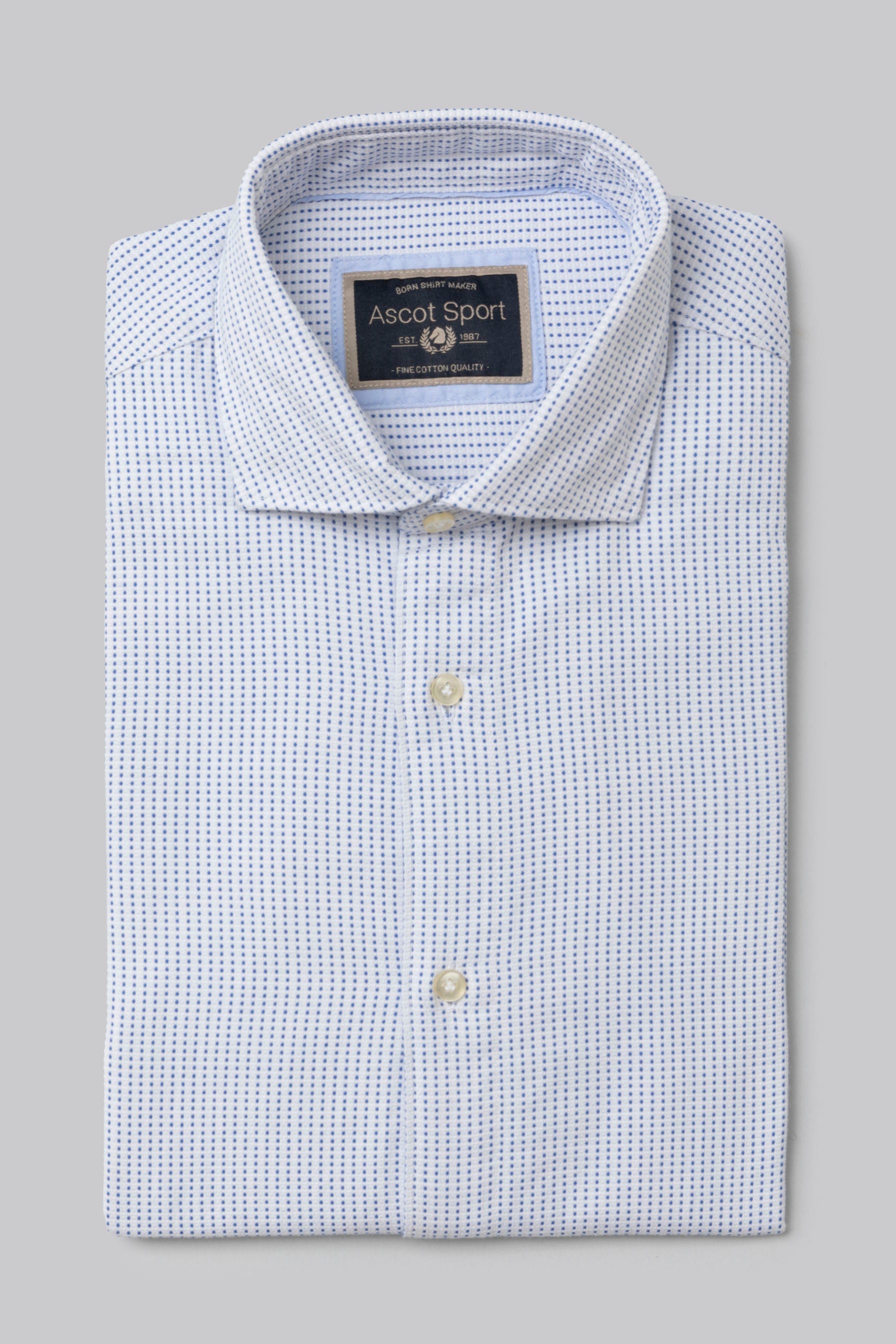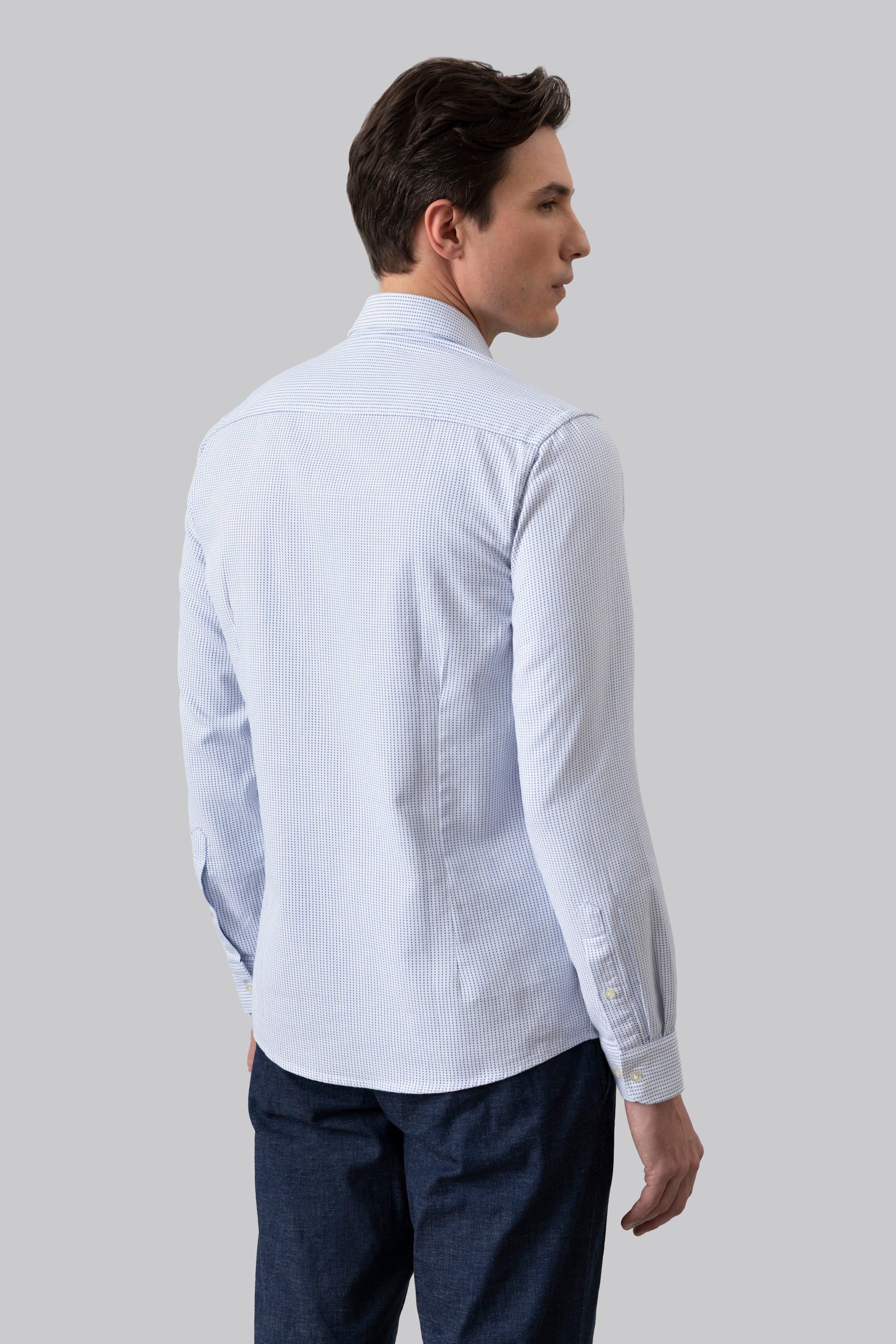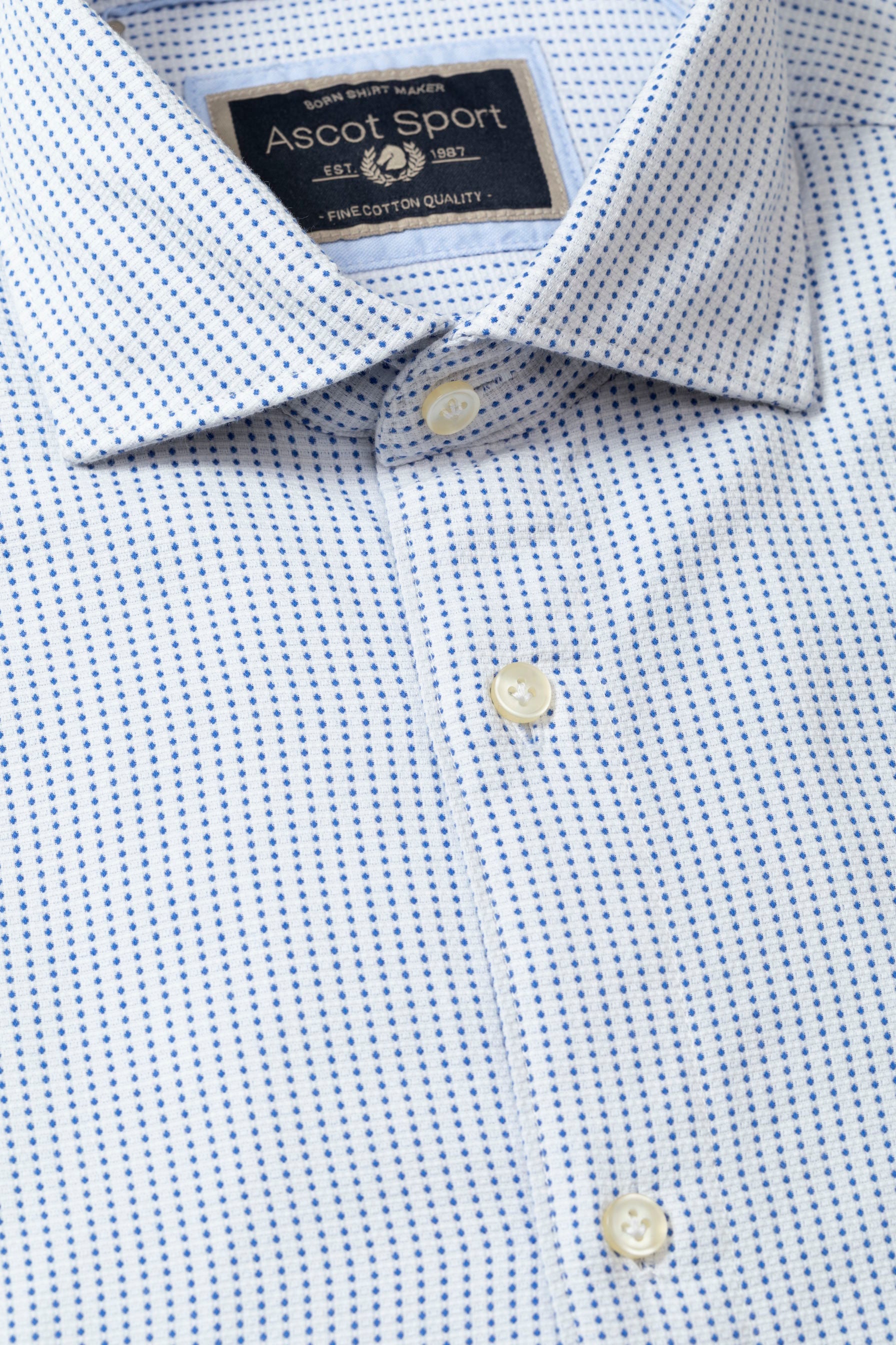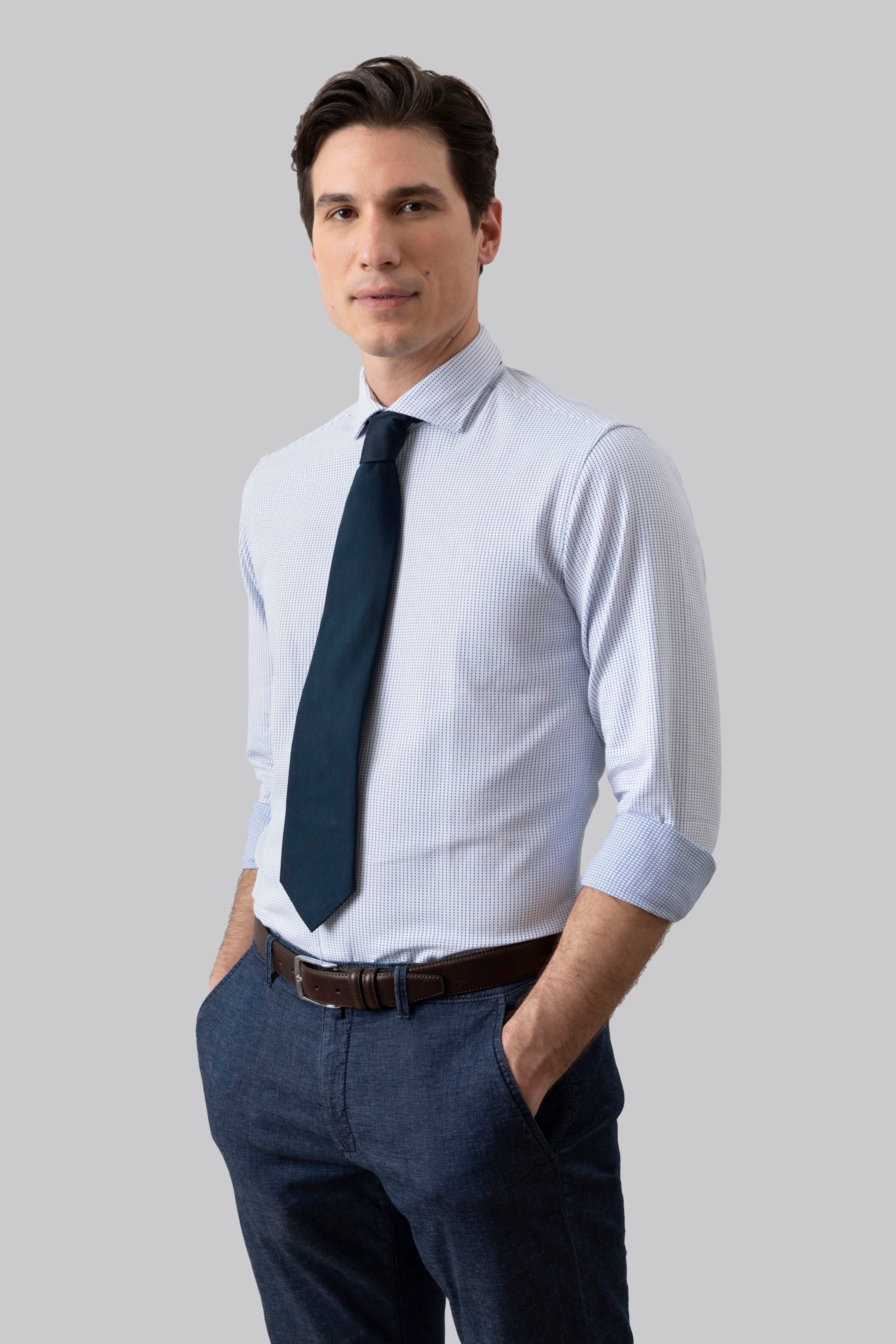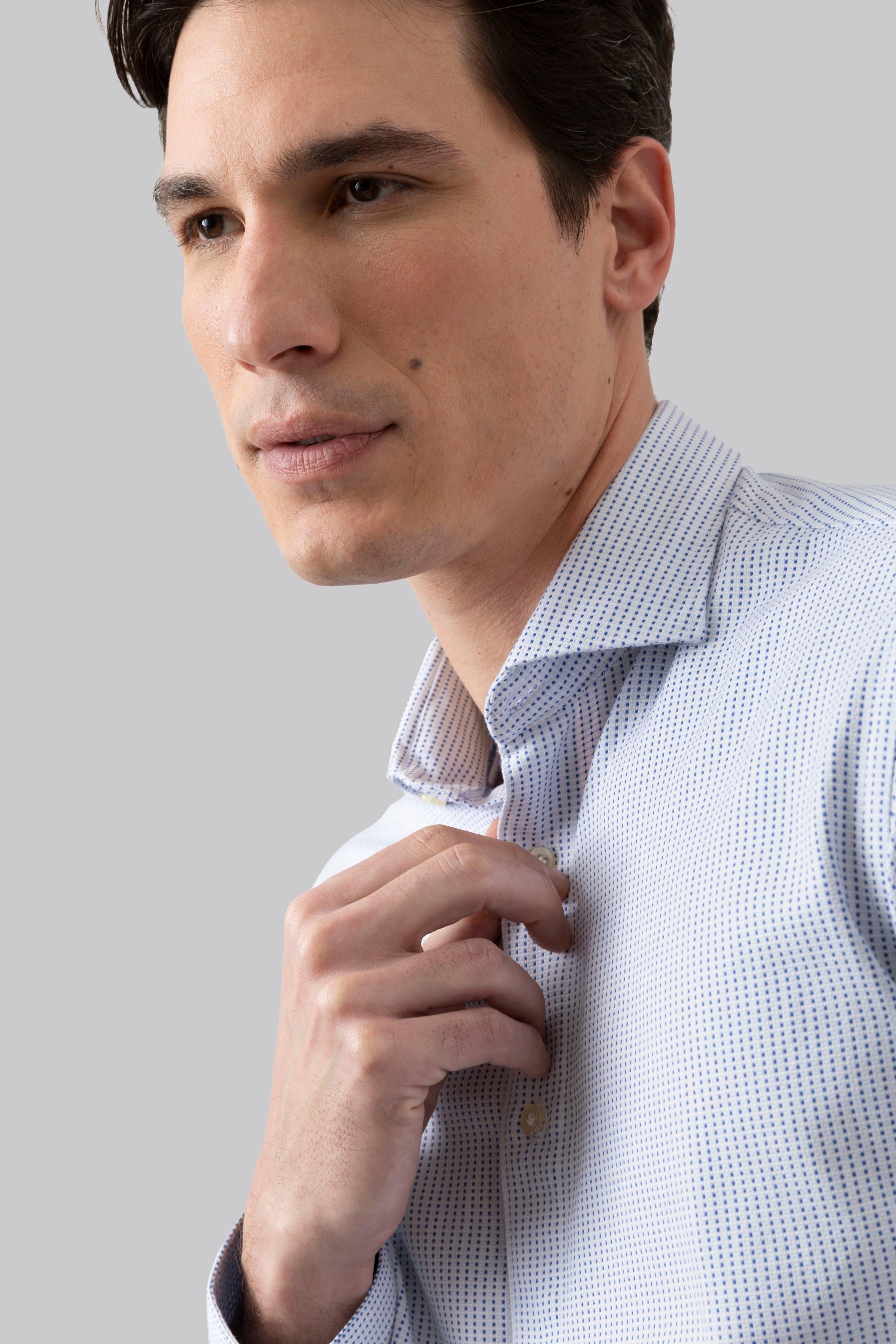 Camicia collo classico in jacquard di puro cotone bianco azzurro