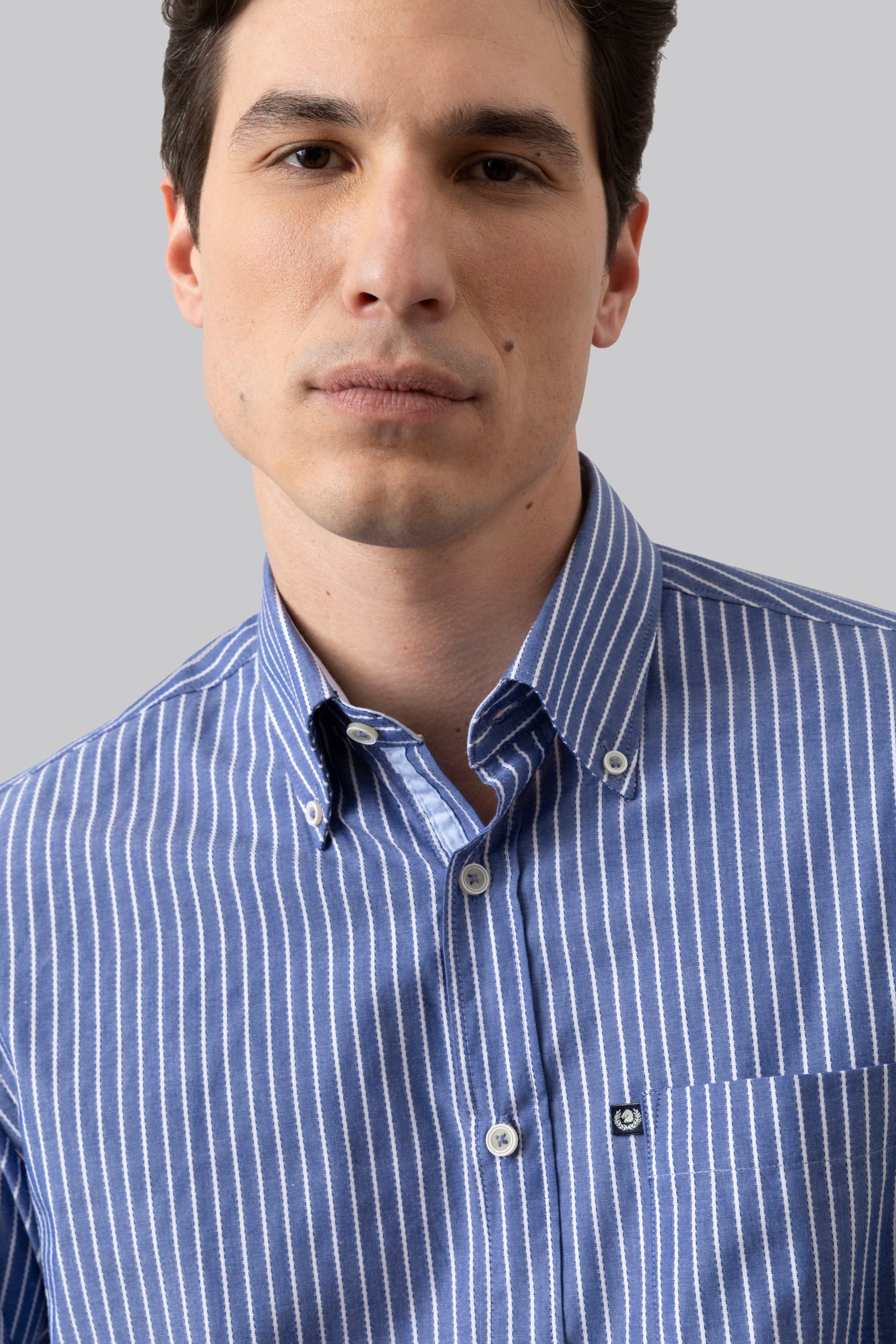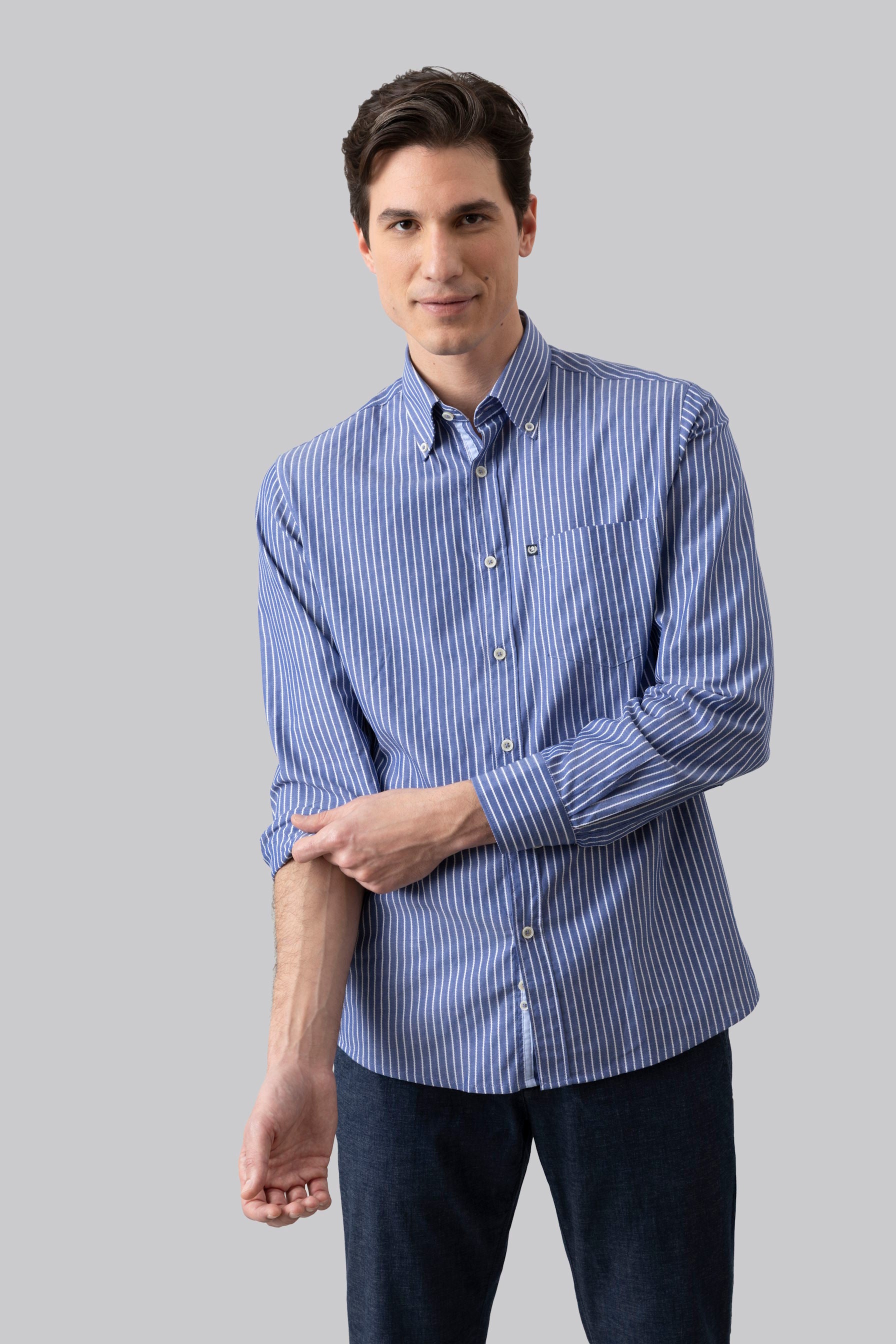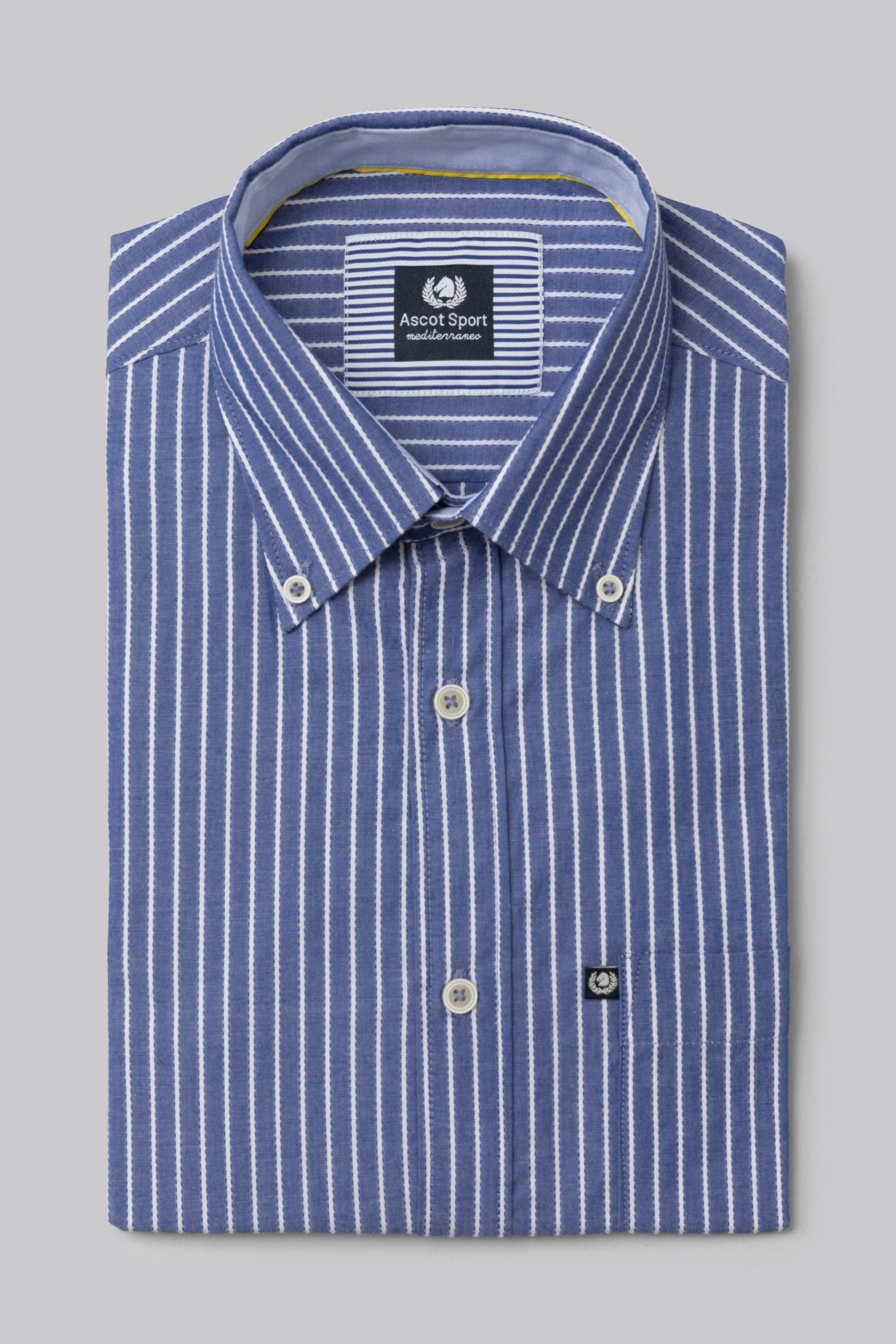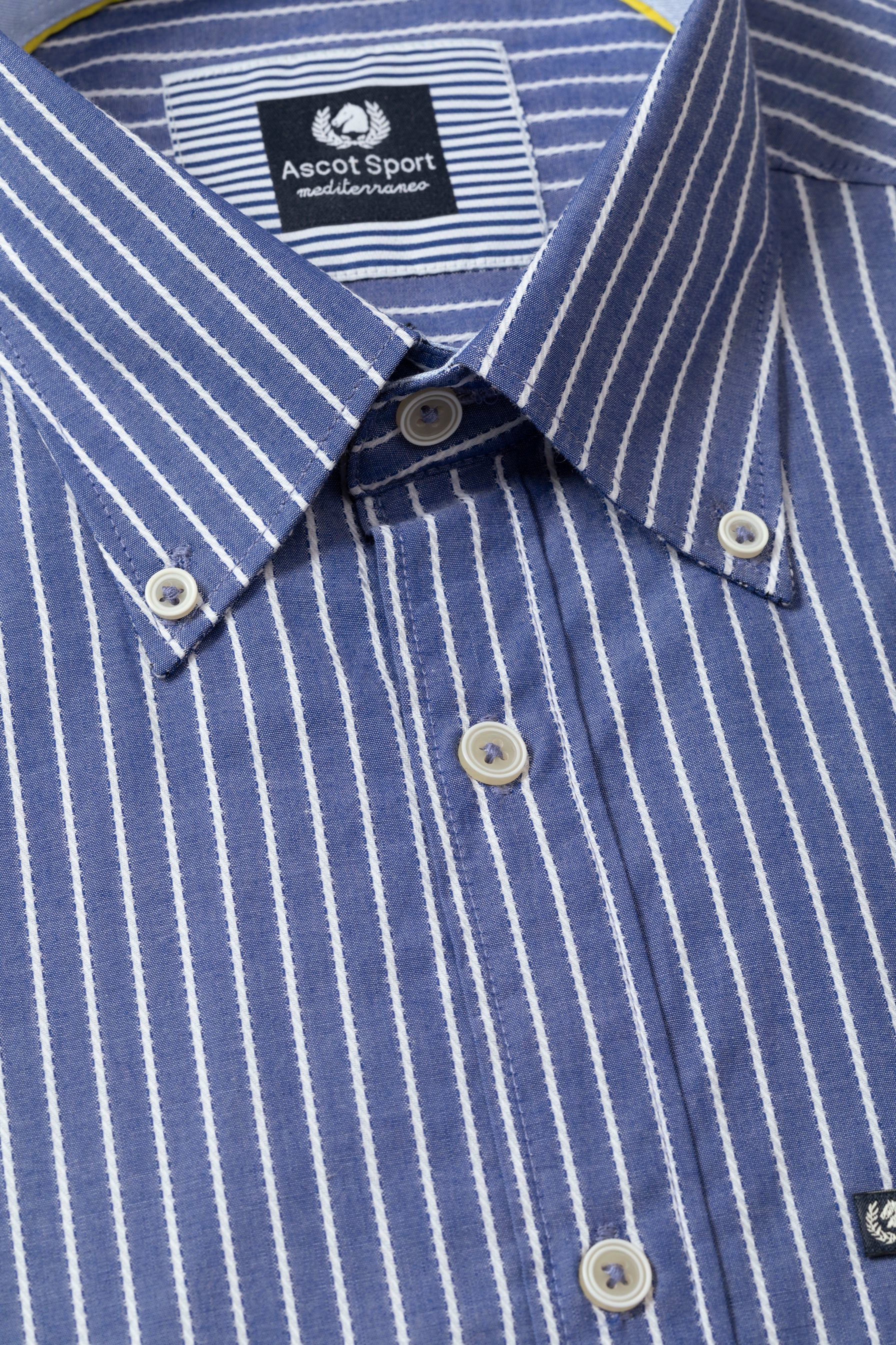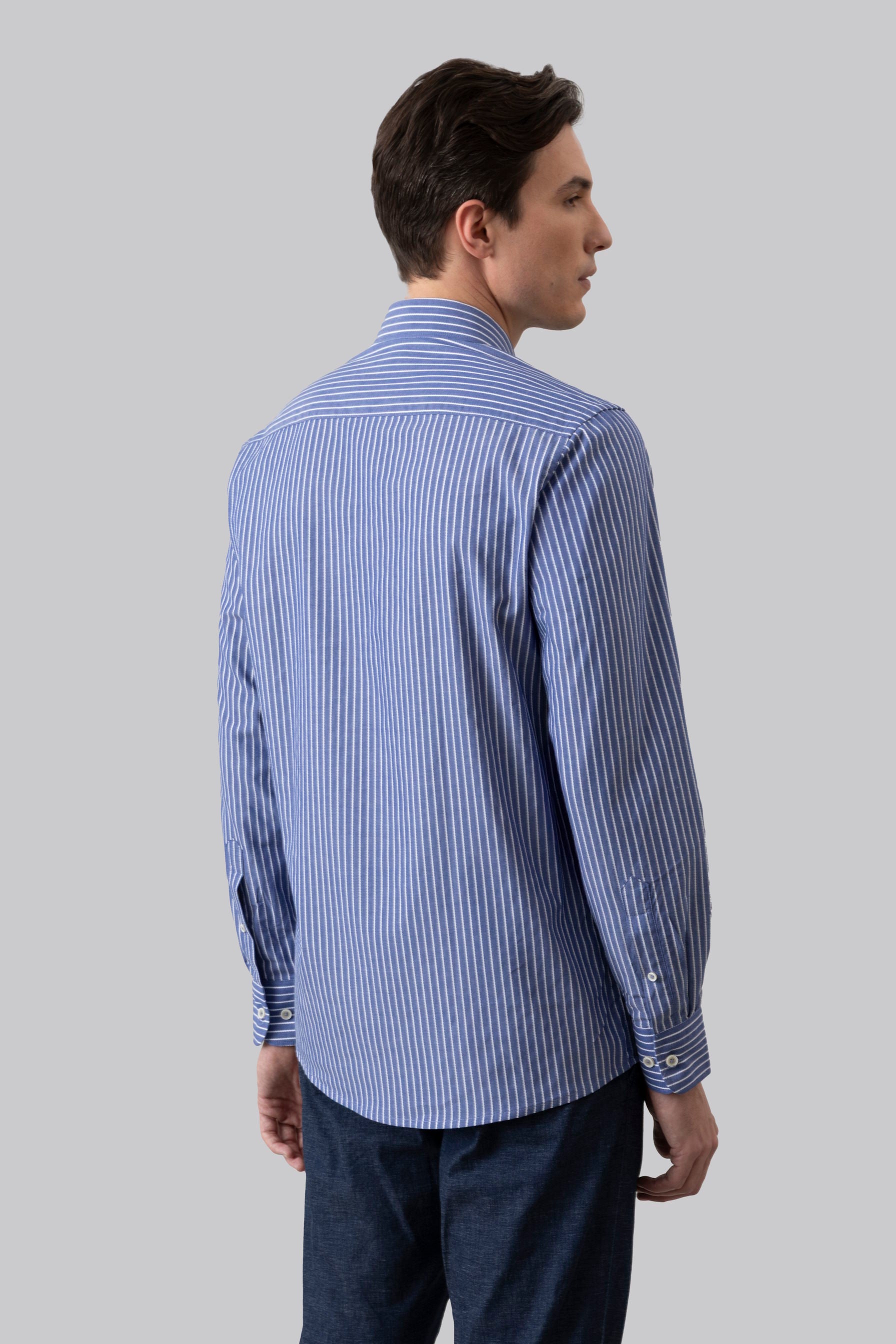 Camicia collo classico in riga jacquard di puro cotone blue bianco