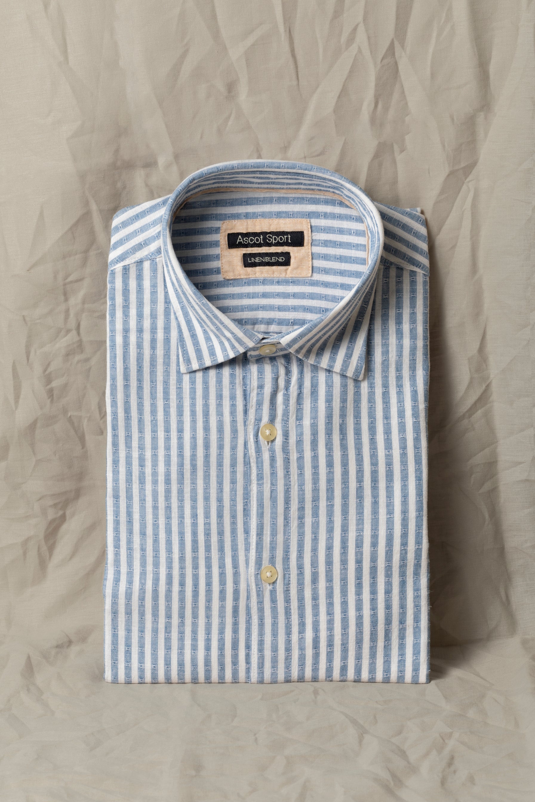 Camicia collo classico in misto lino cotone riga operata