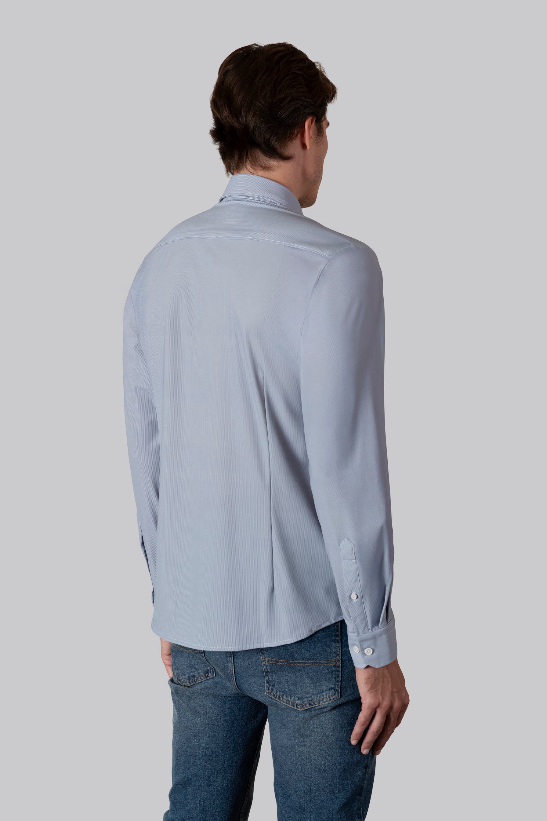 Camicia collo classico in tessuto stampato tech-stretch no stiro
