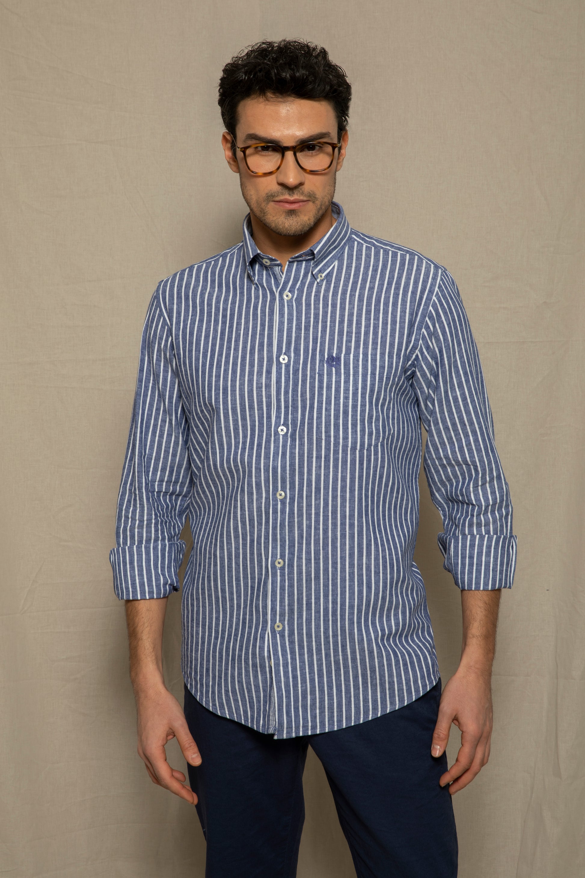 Camicia in fantasia in misto lino cotone riga alternata misto Lino 55% Cotone 45%