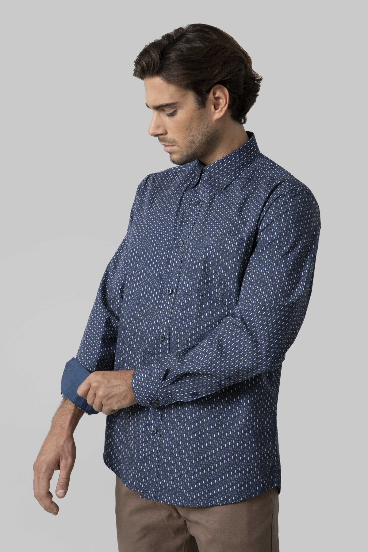 Camicia button down in popeline stampato disegno geometrico 100% cotone