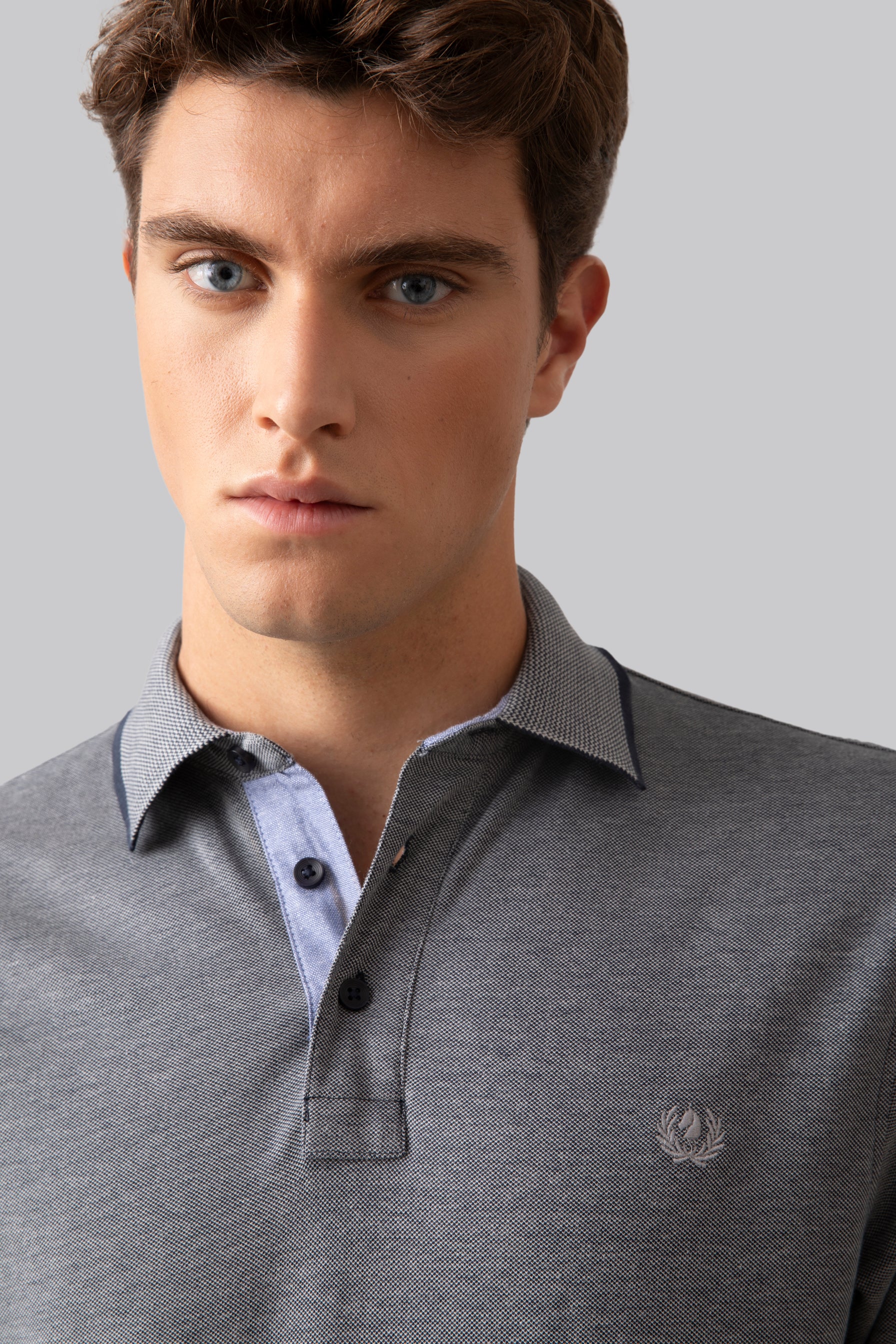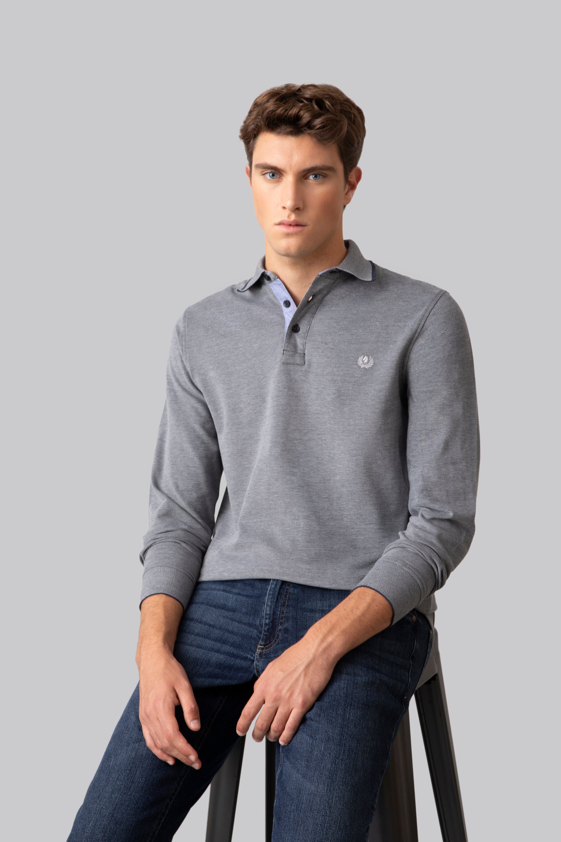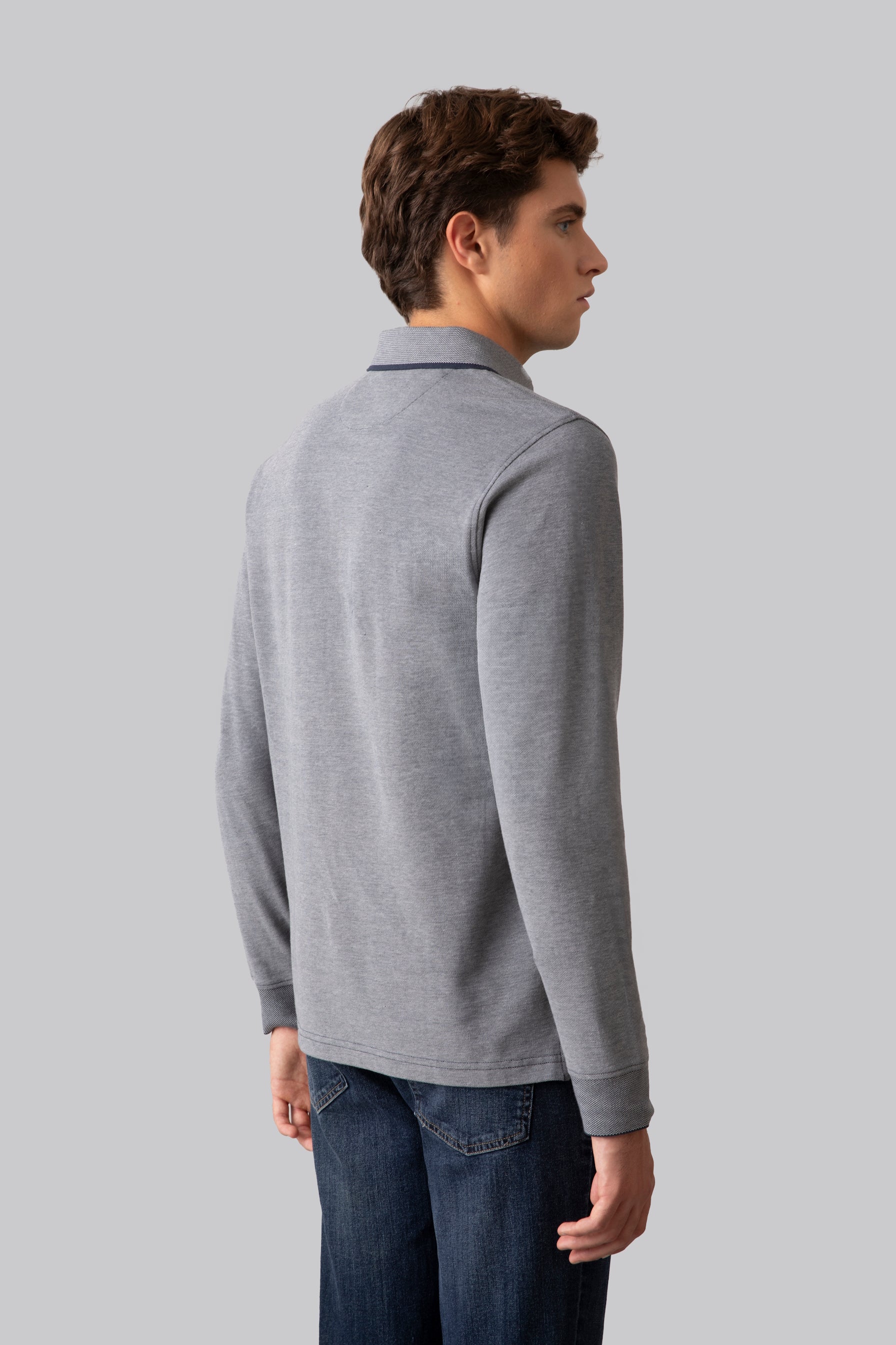 Polo manica lunga in 100% cotone due toni